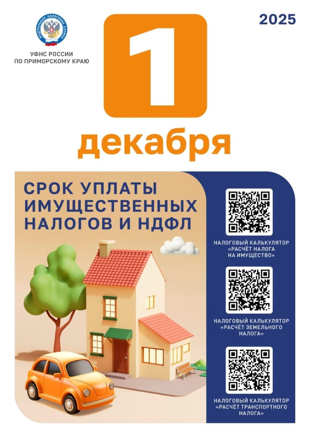 Срок уплаты имущественных налогов - не позднее 1 декабря 2025 года.